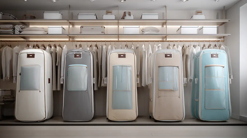 - armazenamento em casa: facilita o armazenamento de roupas fora de estação ou peças que não são usadas com frequência, protegendo-as da poeira e da umidade.